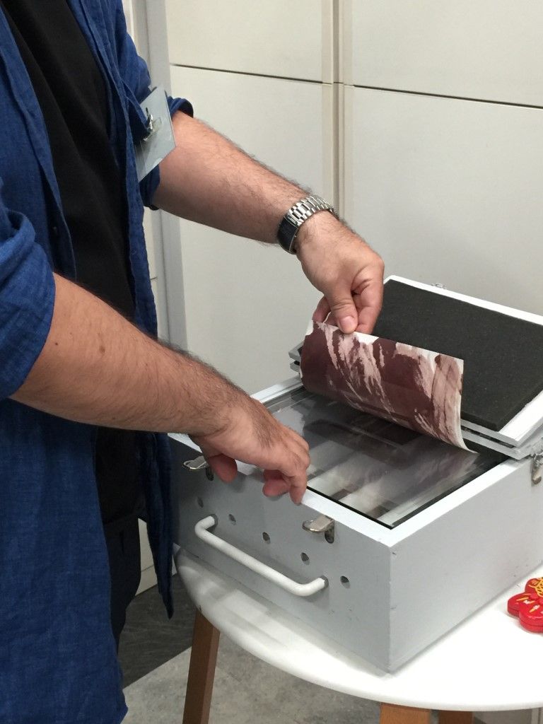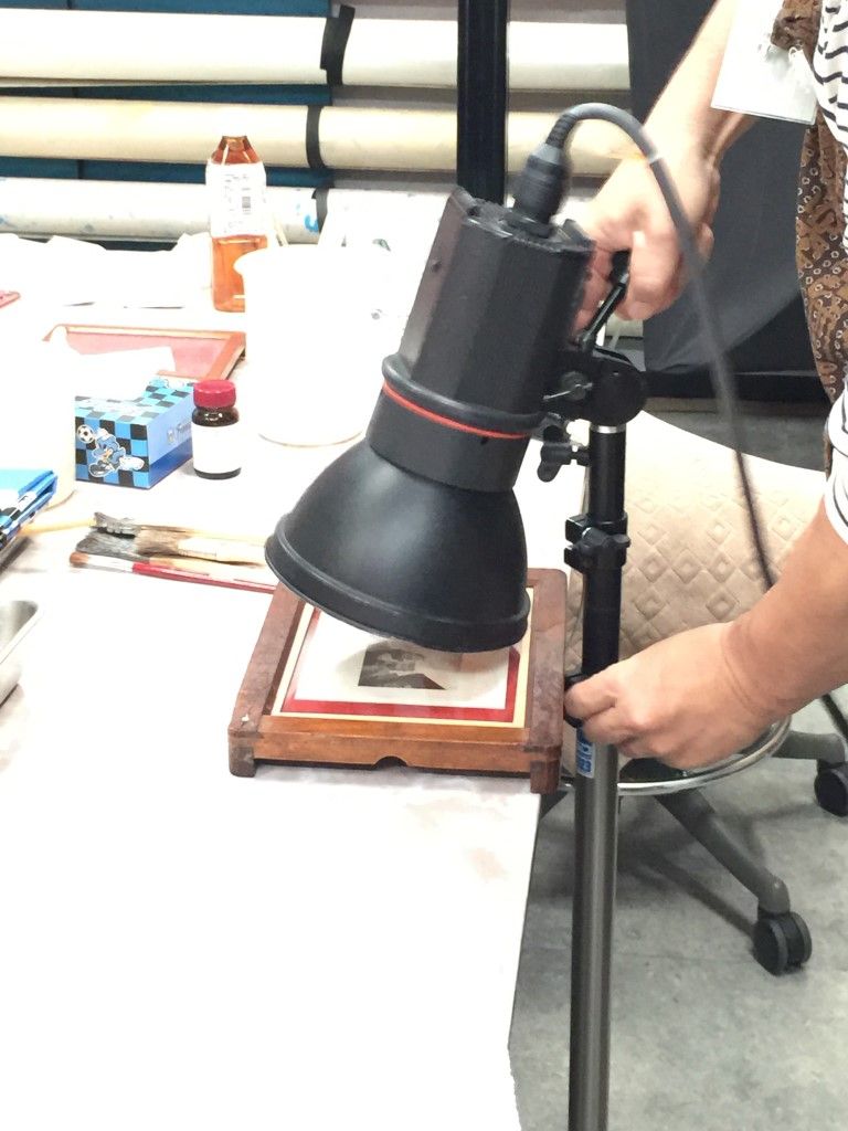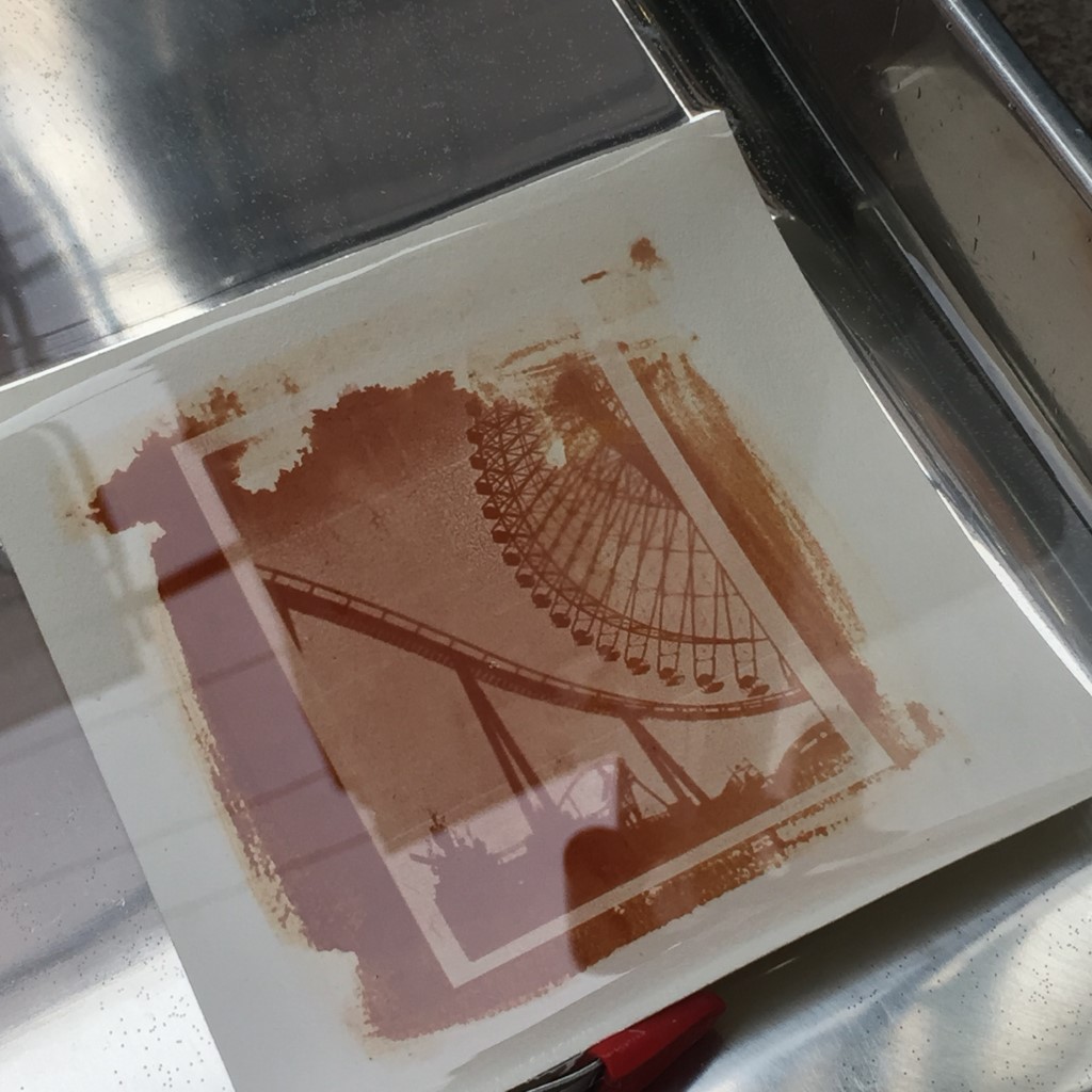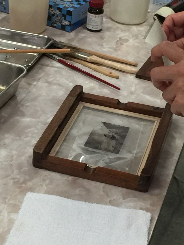 9月15日、あいにくの雨天の中、鶏卵紙ワークショップを開催しました。 写真を手作りするのはやっぱり楽しいですねぇ。 来たる7月20日(土)は、額装ワークショップです! 鶏卵紙ワークショップは9月の予定。お楽しみに! 一人日にちを勘違いして参加できませんでしたが、楽しかったですよ。9月にリベンジ開催しますので、お楽しみに! フォトショップを使ってネガ作り。 階調調整がちょっと難しいです。 ネガが完成! 鶏卵は白身だけを使います。 塩と水を入れて充分攪拌。 黄身は「オロナミンセーキ」に。結構美味しかったですよ。 漉します。 卵汁を紙に塗布。 硝酸銀溶液を作ります。 硝酸銀溶液を塗布。 焼き枠に入れて・・。 あいにくの荒天だっので、ストロボで露光。 セピア調が濃くなっていきます。 半分だけ開けて、露光状態を確認。焼き枠は便利だなぁ。 久門お手製の露光装置も大活躍! 雨の中、定着してます。 定着するとちょっと薄くなります。 水洗して感想したら完成です! 皆さんの作品はこちら。アートな名作揃いですよ。 鶏卵紙ワークショップ、次回は9月! お楽しみにっ! 関連投稿: 額装(マット切り)ワークショップの実施報告 「スマホで撮れる、スタジオライティング・ワークショップ」開催報告(3月20日) 新丸子つまみぐいゼミ㉙「遺影」はどうする?(写真道場) 額装・マットカット特別講座を開催しました。