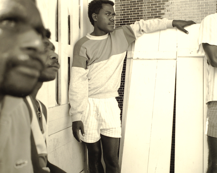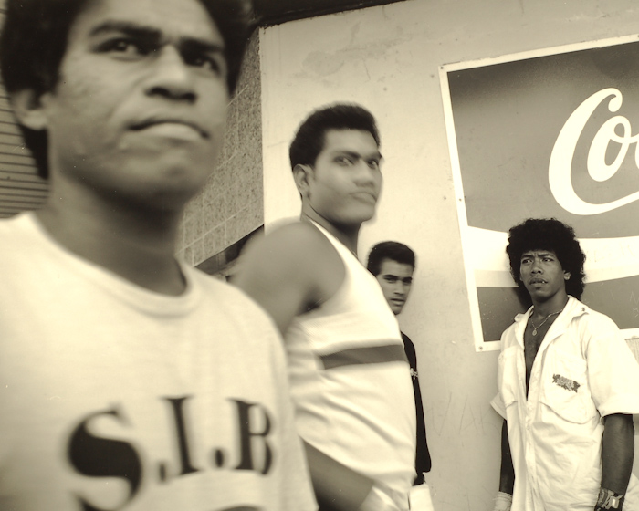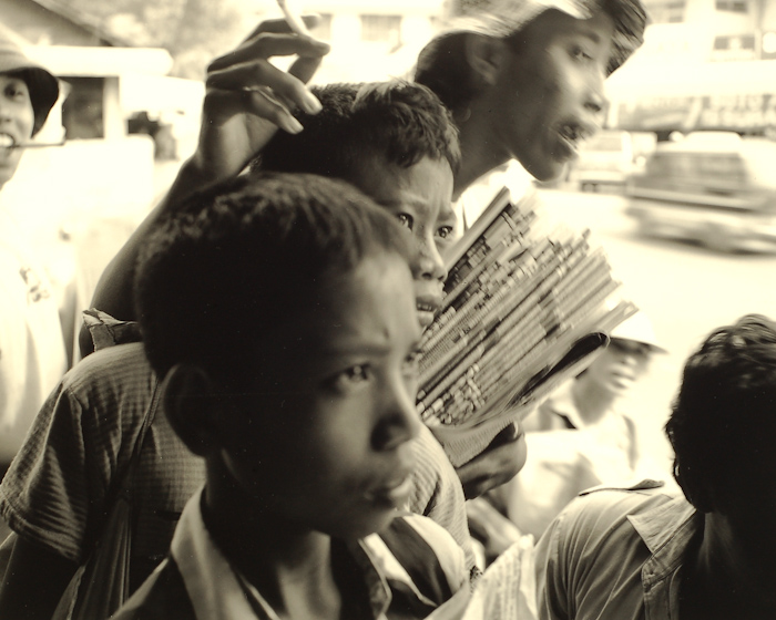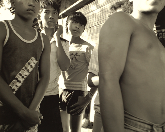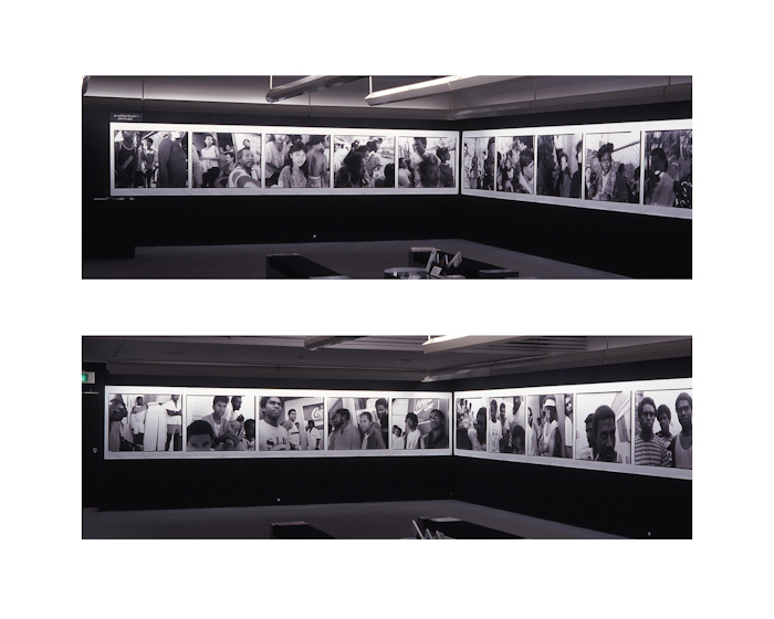 当時、銀座にあったニコンサロンで開催した写真展「もう一つのスナップショット」の作品です。全部4×5カメラで撮影したものです。フィルムはTMAX400。イルフォードの幅108センチのロールペーパーにプリントしました。ですので、展示している一枚のプリントの縦が108センチ。横は130センチくらいあります。全て、私の手焼き。写真道場のスタジオに引き伸ばし機をセットし、薬液プールを作って、1週間掛かりで一人でプリントを作ったのです。若かったですが、足腰ボロボロ状態でした。